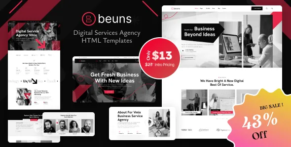 Beuns – Digital Services Agency WordPress Theme is a modern, professional, and fully responsive WordPress theme designed for digital agencies, marketing firms, creative studios, and IT service providers. It provides a clean and engaging platform to showcase services, portfolios, client testimonials, and team members, helping agencies attract and convert clients effectively.