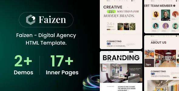 Faizen – Digital Agency WordPress Theme is a modern, sleek, and fully customizable WordPress solution built specifically for digital marketing firms, creative studios, SEO agencies, web development companies, and startups looking to create a compelling online presence. With its seamless blend of aesthetic design and performance-focused features, Faizen empowers you to launch a professional website that not only looks stunning but also drives results.