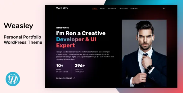 Weasley – Personal Portfolio WordPress Theme is a clean, modern, and fully responsive WordPress theme designed for creative professionals, freelancers, designers, and developers who want to showcase their work, resume, and skills online in a professional way.